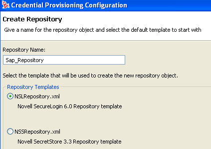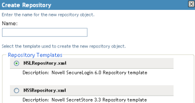 指定储存库对象的名称,然后选择 以使用 SecureLogin 模板创建储存库。