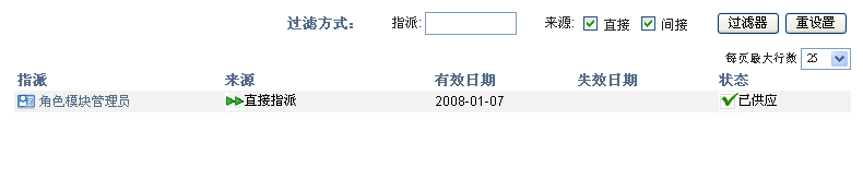 注:“角色名称”过滤器不限制从身份库中返回的对象数量。只是根据过滤准则限制页面上显示的对象数。其他过滤器(如“状态”)则限制从身份库返回的对象数量。