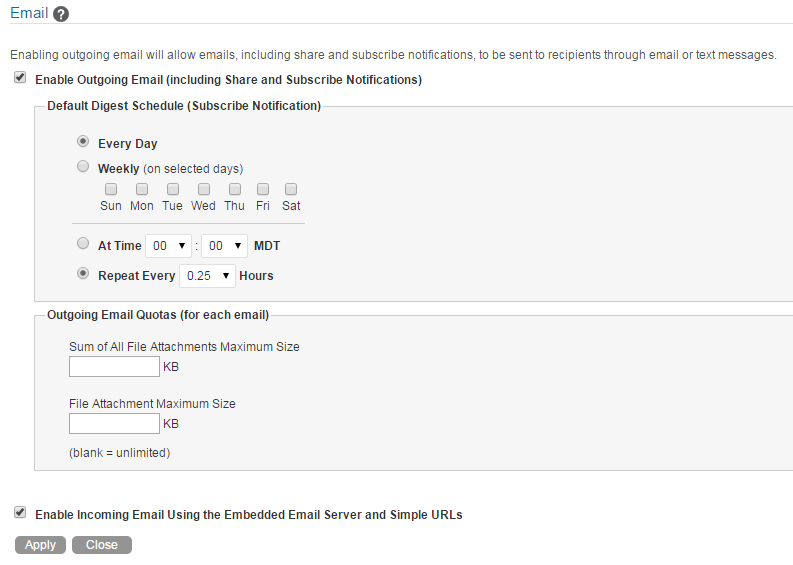 For information about the options that users have for receiving email notifications, see Subscribing to a Folder or Entry