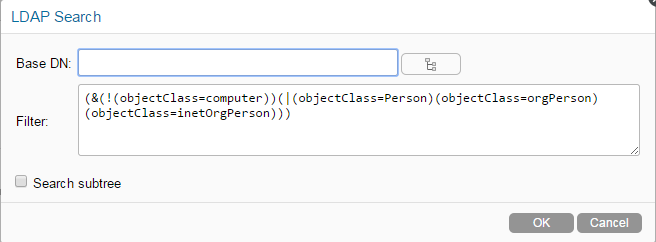 Specify the following information n the LDAP search dialog box: