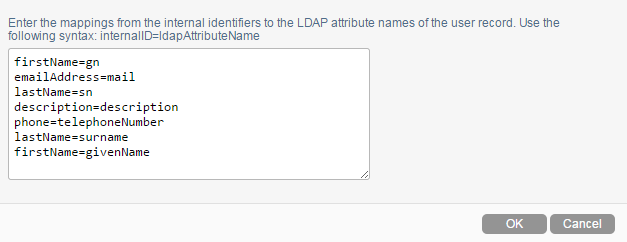 If you want to map users to a different attribute, select Other in the drop-down list, specify the name of the LDAP attribute, then click OK. Before you do this, ensure that the attribute that you use is a binary attribute. For example, the cn attribute cannot be used because it is not a binary attribute.