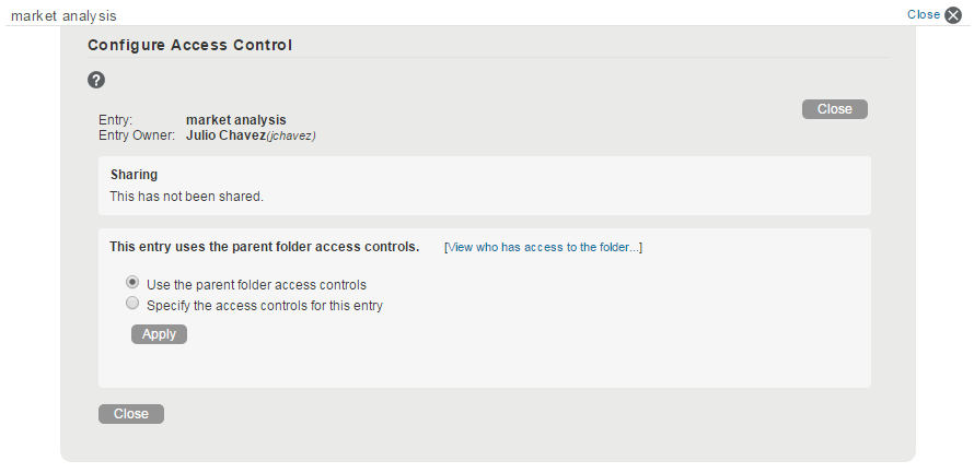 Before you can modify access controls for an entry, ensure that the entry does not inherit its access control settings from the parent folder.