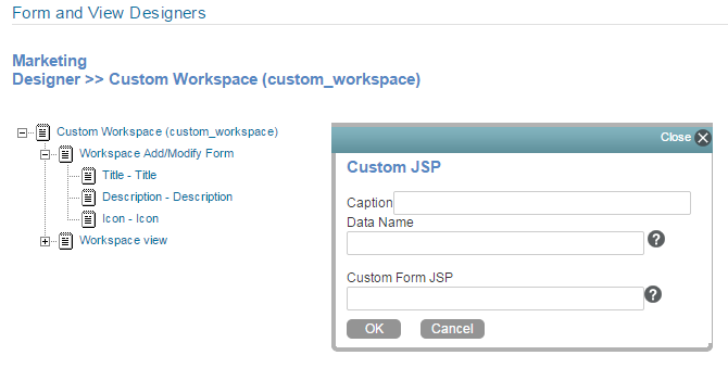 Custom Form JSP: Specify the file name of the custom JSP file.