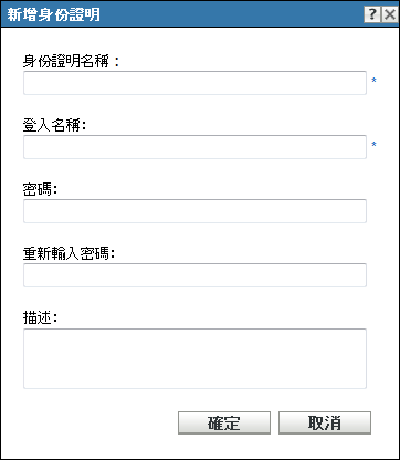 2. 「身份證明 Vault」面板上,按一下「新增」>「身份證明」,以顯示「新增身份證明」對話方塊。